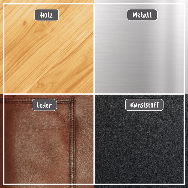 Lackiertes Holz, Leder, Kunststoff, Metall, Displays, Fliesen, Silber