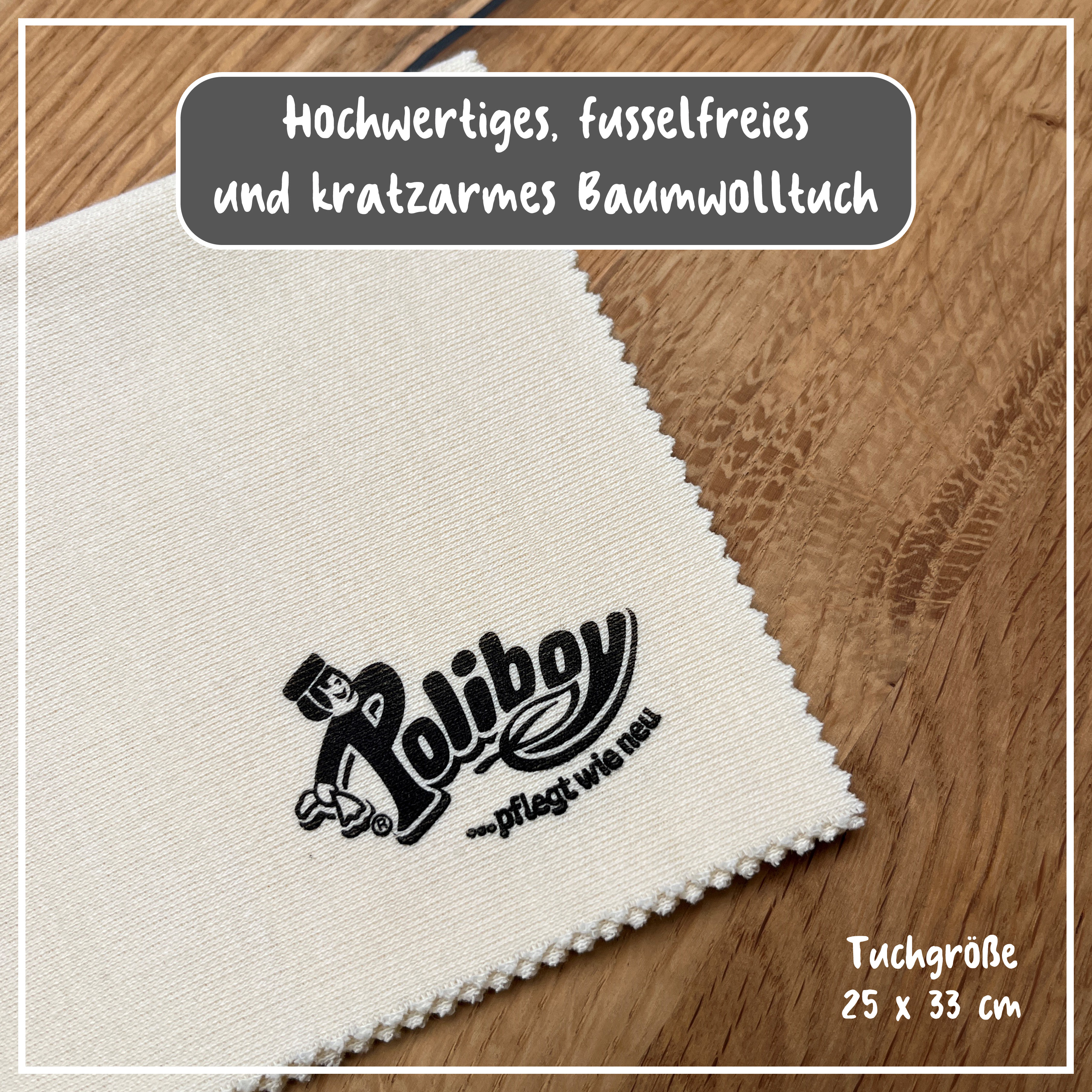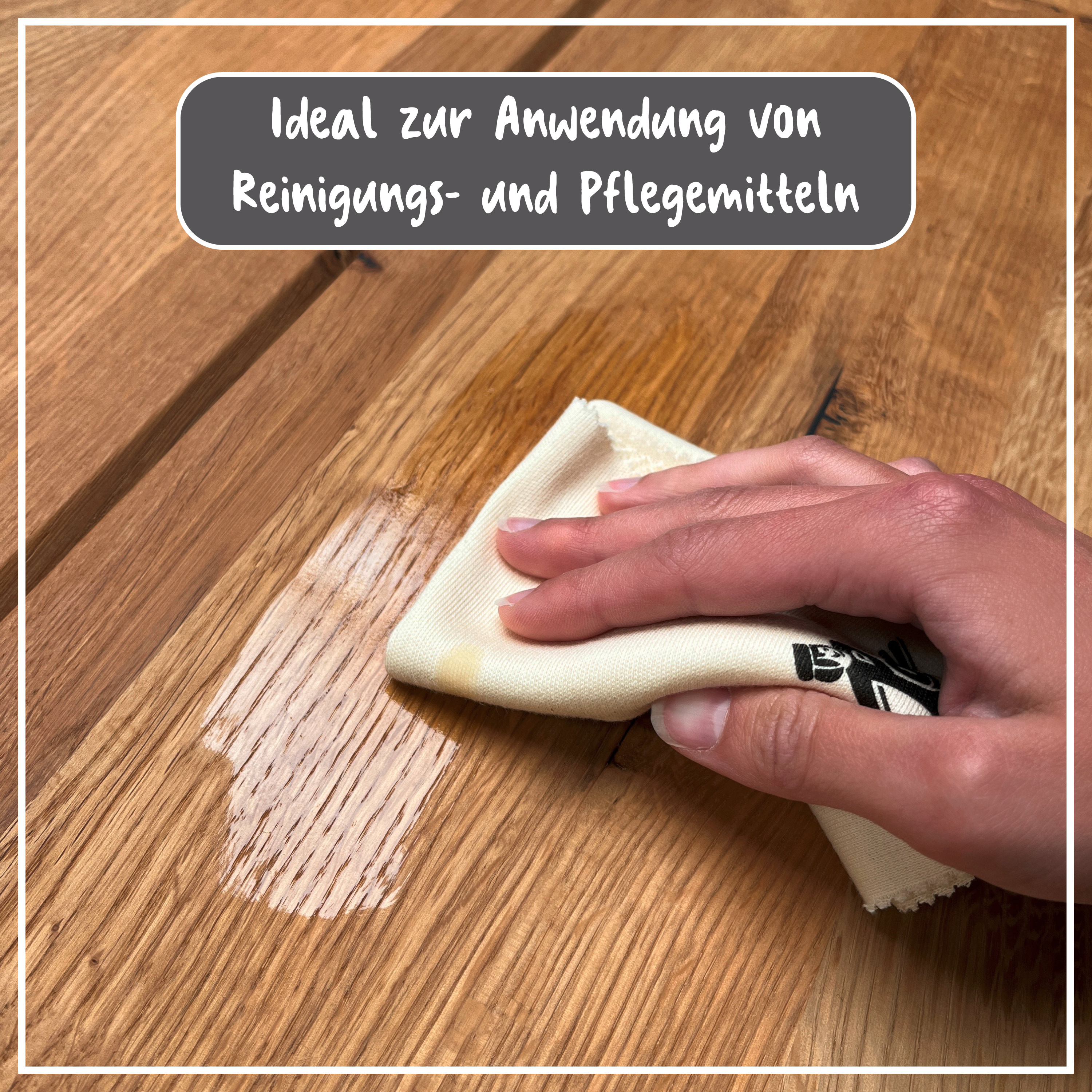 Hinweis: Das Tuch ist mehrfach verwendbar, waschbar bis 60 Grad und für den Trockner geeignet. Nach der Verwendung mit Öl, Politur oder Wachs sollte das Tuch nicht mehr gewaschen werden.
