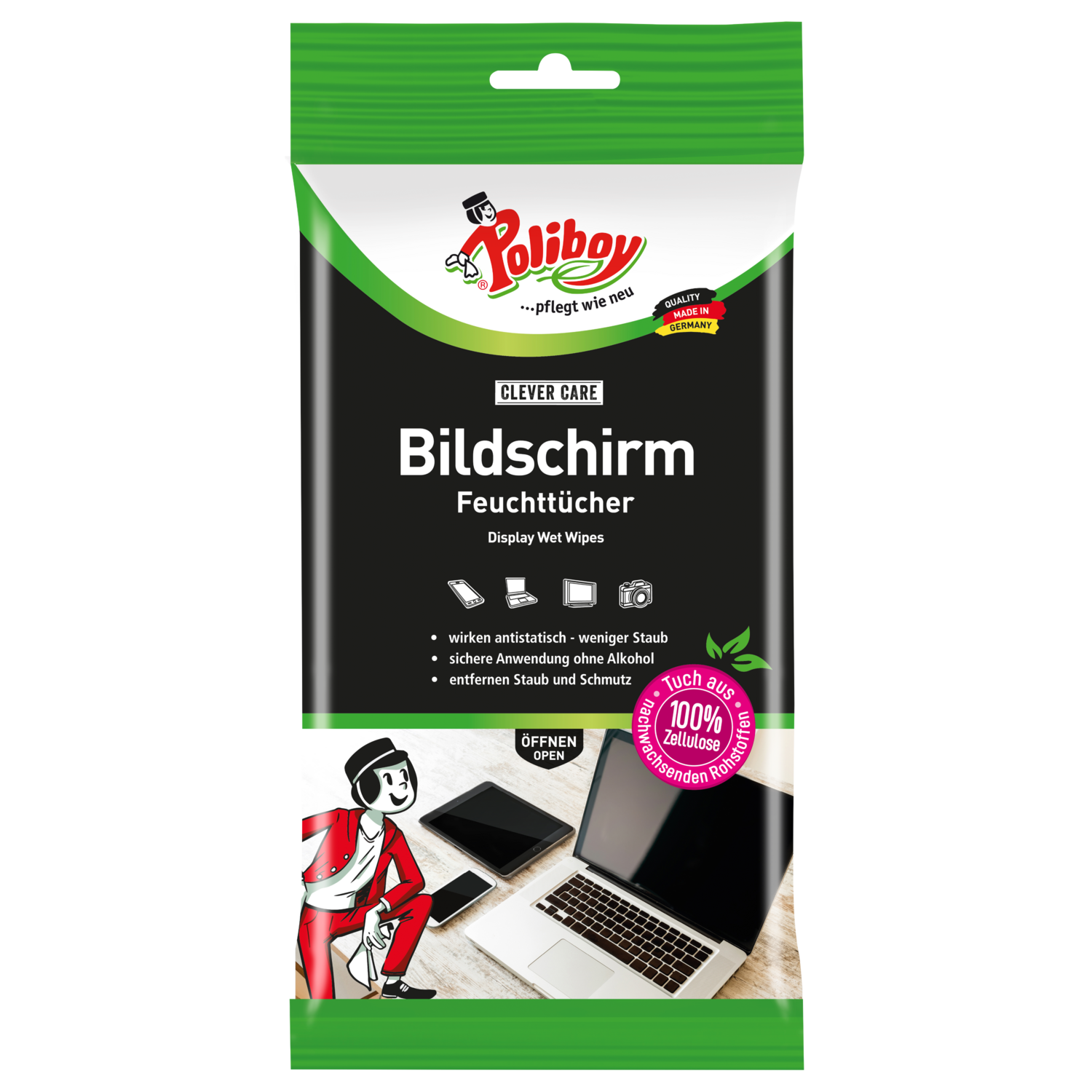 Reinigungshinweise des Geräteherstellers beachten. Vor Anwendung Gerät ausschalten und Display abkühlen lassen. Tuch entnehmen und ohne Druck über die Flächen wischen. Bei stärkeren Verschmutzungen oder Streifenbildung mit neuem Tuch wiederholen. Ggf. trocken nachwischen. Nach Entnahme Packung wieder fest verschließen.Vor direkter Sonneneinstrahlung und hohen Temperaturen schützen. Ausgetrocknete Tücher nicht mehr verwenden. Gebrauchte Tücher in den Hausmüll geben, leere Verpackung recyceln.
