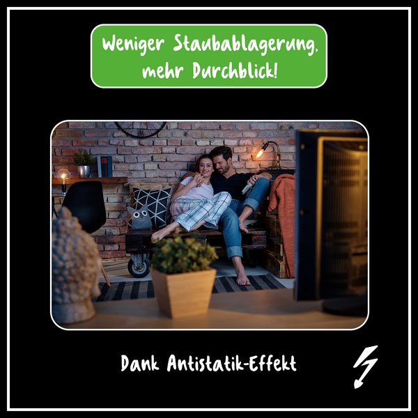 - Antistatische Wirkstoffe reduzieren die Staubablagerungen