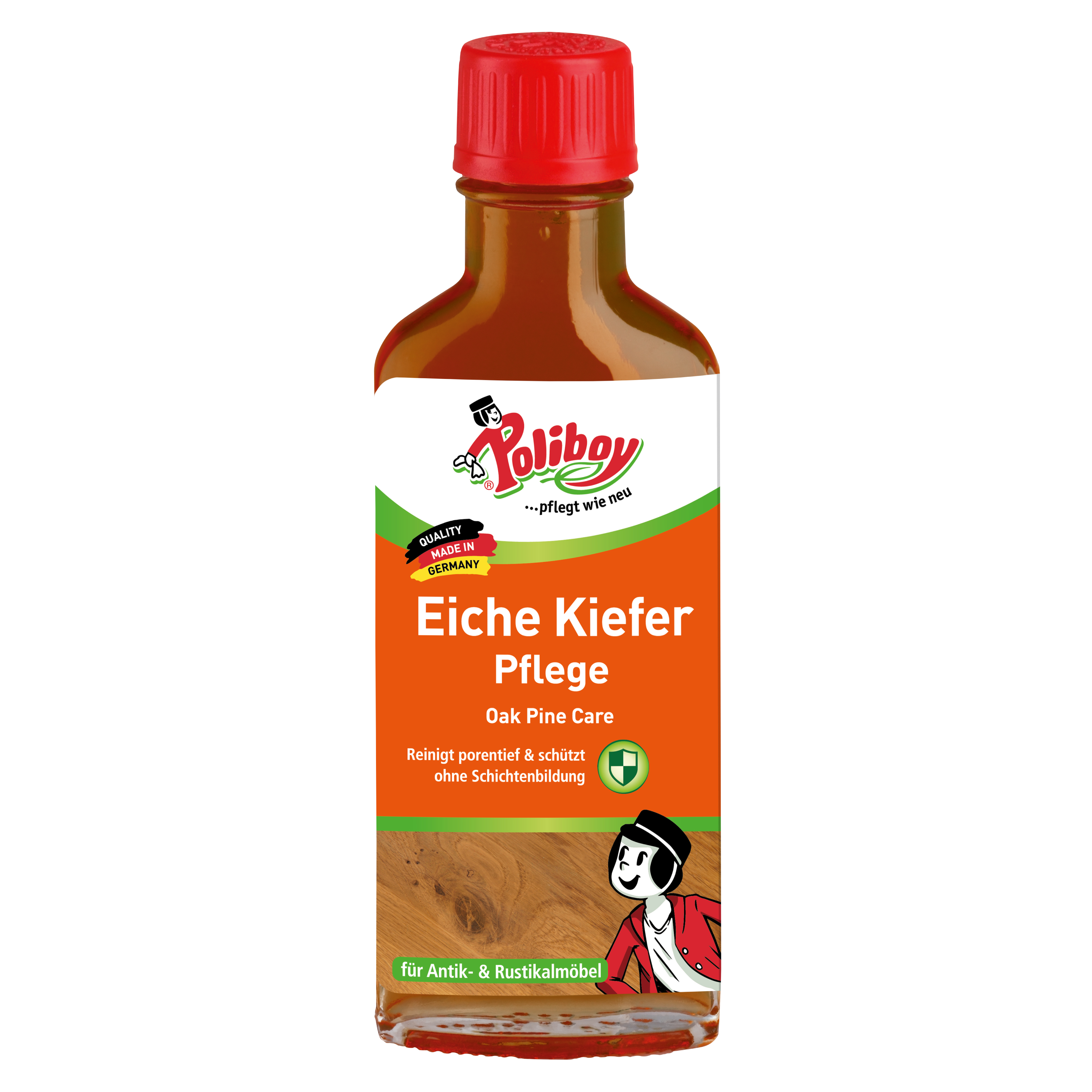 Vor Gebrauch schütteln! POLIBOY auf ein Tuch geben und in Maserrichtung verreiben. Vorher an unauffälliger Stelle testen.