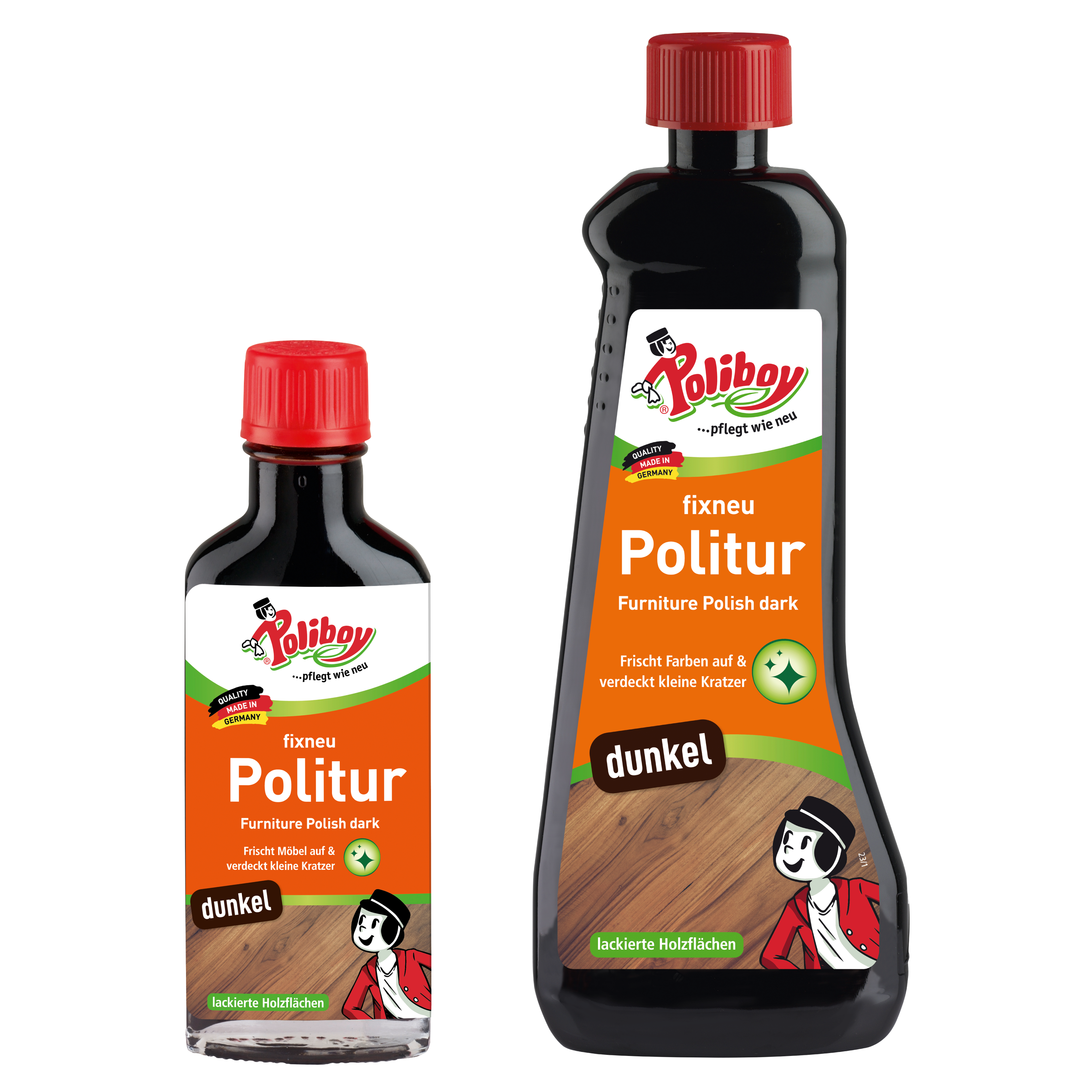 Vor Gebrauch schütteln! POLIBOY auf ein sauberes, fusselfreies Tuch geben - nicht direkt auf die Oberfläche spritzen. In Richtung der Maserung gleichmäßig dünn auftragen und trocken polieren. Vor Gebrauch an unauffälliger Stelle testen. Achtung - Spritzer vermeiden, da Produkt sehr farbintensiv.