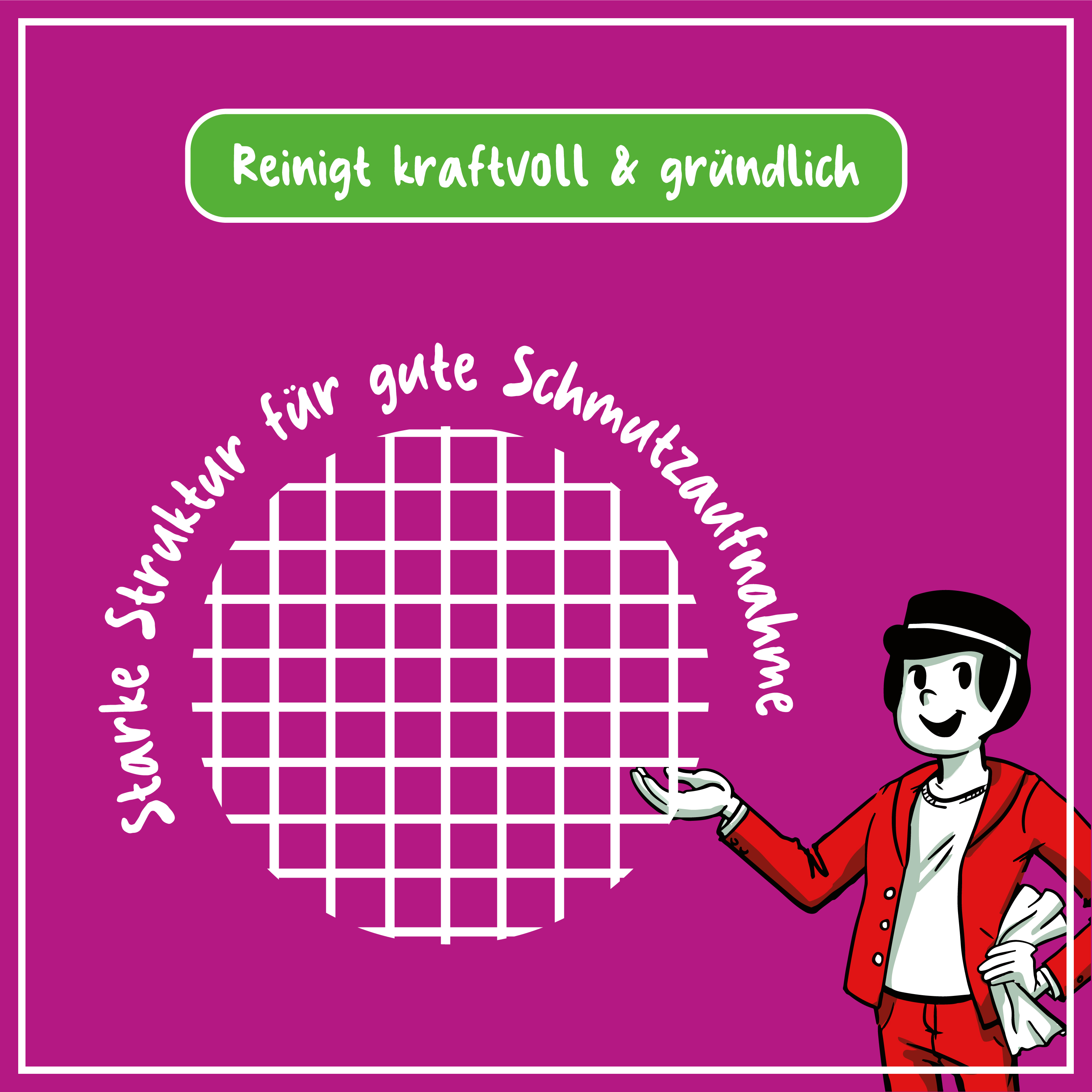- Reinigen kraftvoll, streifenfrei und gründlich dank Schmutzfangstruktur