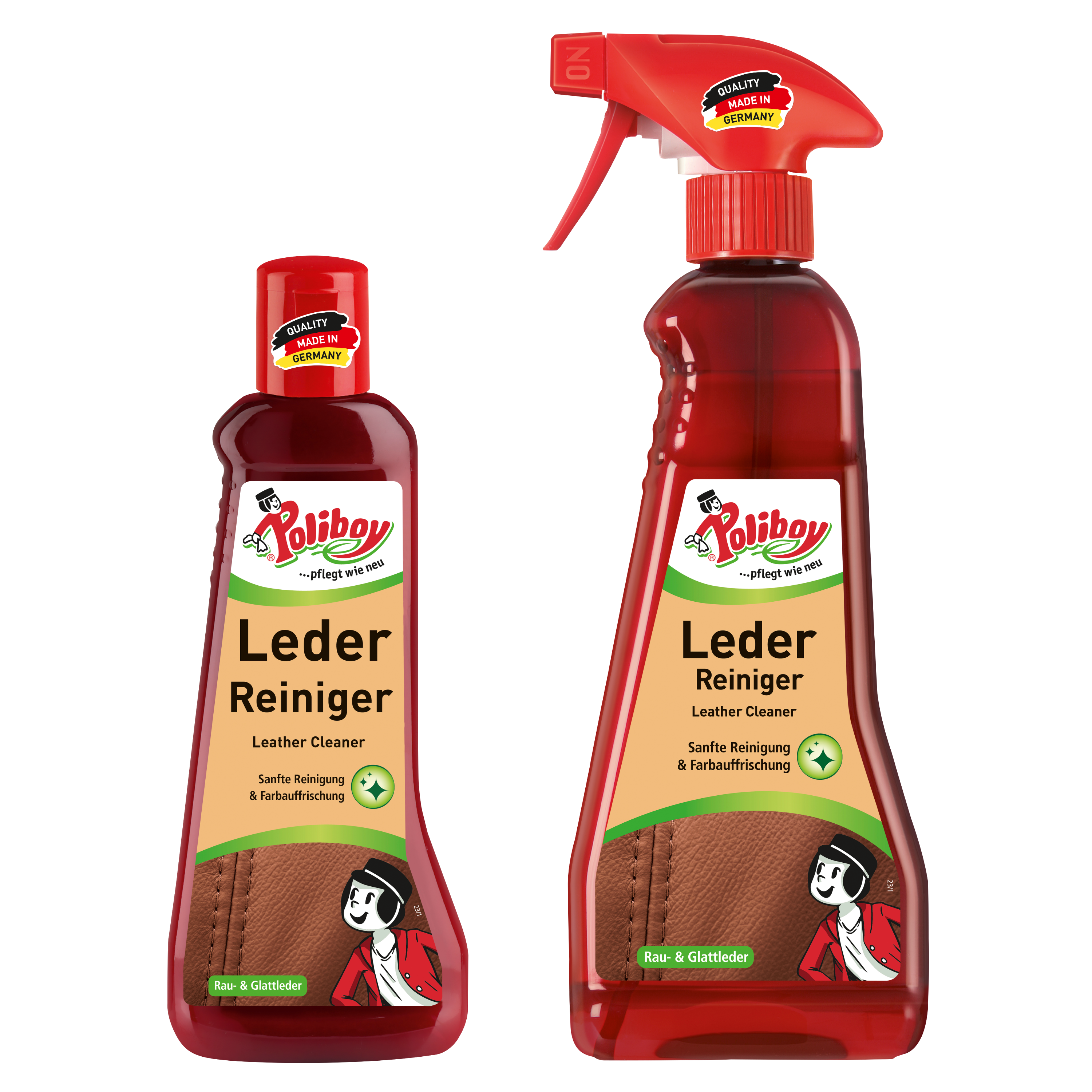 POLIBOY auf ein Tuch oder Schwamm geben und Fläche leicht abreiben. Kein Nachspülen! Einfach trocknen lassen. Bei starker Verschmutzung wiederholen. Rauleder nach dem Trocknen aufrauen. Vorher an unauffälliger Stelle testen.