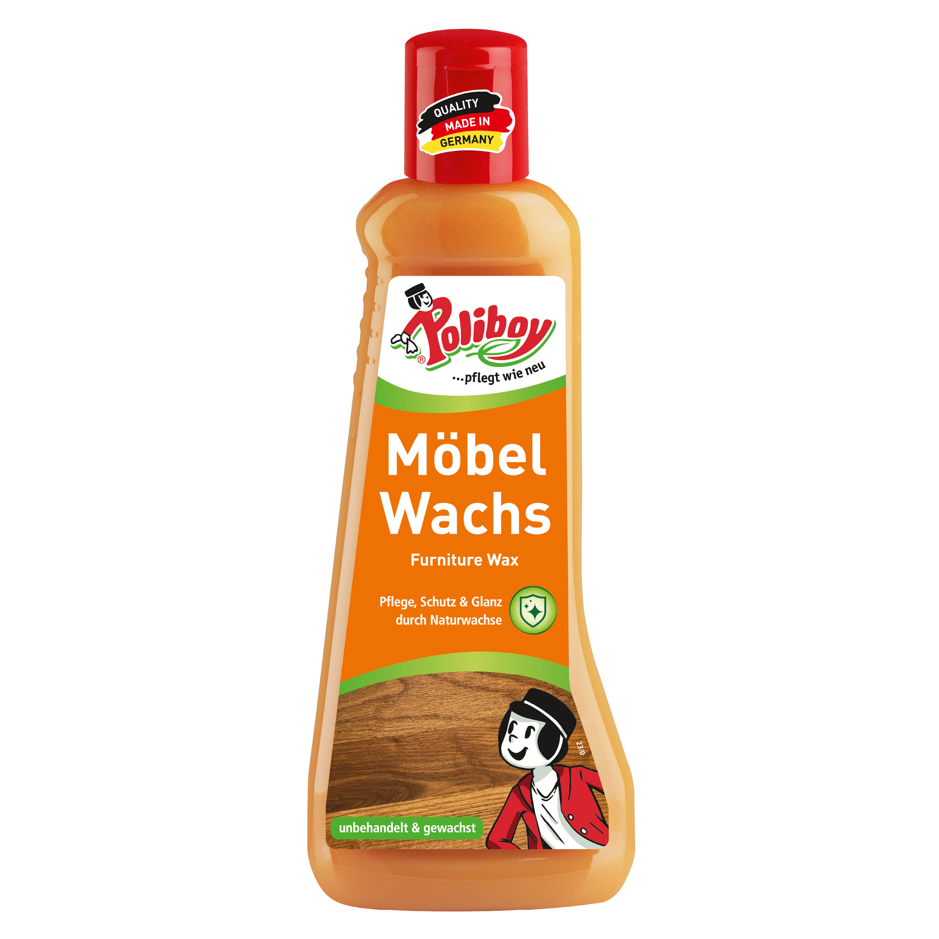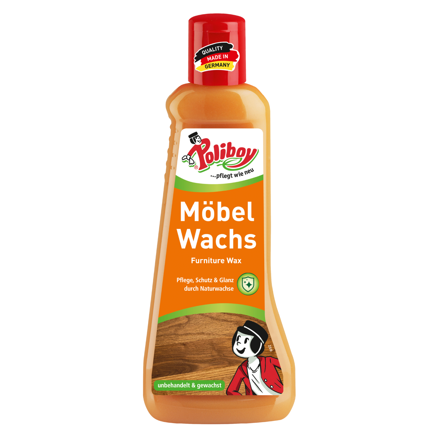 POLIBOY Möbel Wachs sparsam auf ein Tuch geben und sofort dünn und gleichmäßig auf die trockene Holz-Oberfläche auftragen. Kurz einziehen lassen und bei Bedarf mit einem trockenen Tuch/weicher Bürste in Maserrichtung einarbeiten. Für besonders starken Schutz (z.B. im Außenbereich) die Anwendung mehrfach wiederholen. Die Flasche bei unregelmäßiger Anwendung vor Behandlung kurz schütteln.
