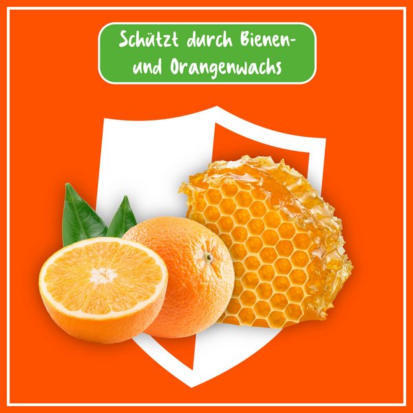 - Schützt durch natürliche Bienen- und Orangenwachse dauerhaft vor Austrocknung und Flecken