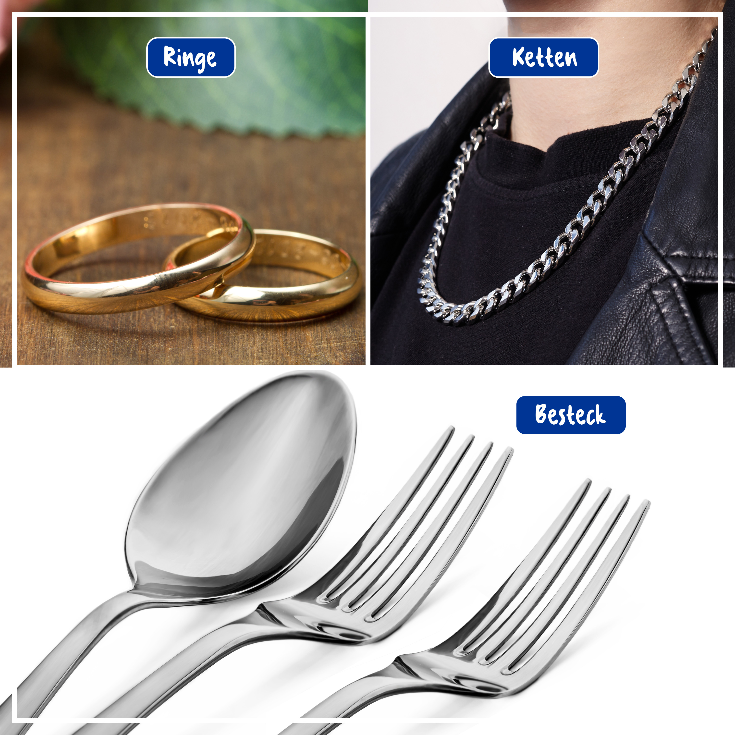 Für Echtsilber, versilberte Gegenstände und Gold
