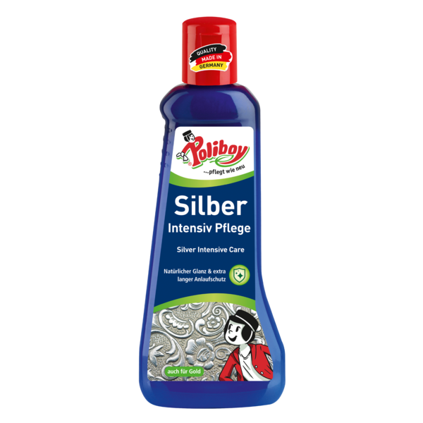 Vor Gebrauch schütteln! POLIBOY auf einen feuchten Schwamm (idealerweise aus Viskose) geben und das Silber damit abreiben. Mit Wasser abspülen und abtrocknen. Wasserempfindliche Teile nur trocken reiben. Bei starken Flecken und sehr dunklen Anlaufstellen die Anwendung wiederholen.