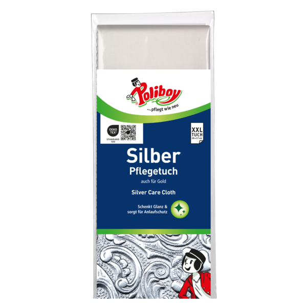 Tuch aus der Verpackung entnehmen und Gegenstände damit einfach abreiben. Bei hartnäckigen Anlaufspuren das Tuch vorher anfeuchten. Es behält seine Reinigungskraft, solange es nicht gewaschen wird. Bewahren Sie das Tuch im wiederverschließbaren Beutel auf. Nutzen Sie auch POLIBOY Silber Intensiv Pflege und POLIBOY Silber Gold Bad für die perfekte Pflege von Silber und Gold.
