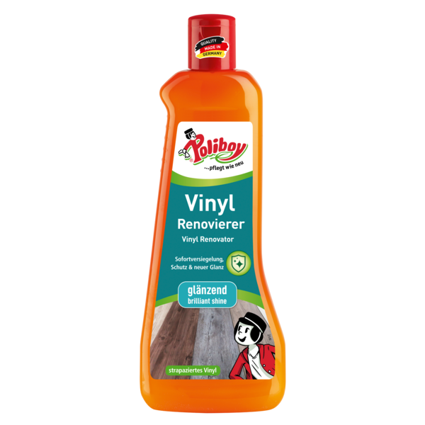 Vor Gebrauch schütteln! Boden gut säubern z.B. mit POLIBOY Vinyl Reiniger. Wurden vorher schichtenbildende Pflegemittel verwendet, diese mit einem schichtenlösenden Kraft- bzw. Grundreiniger entfernen. Renovierer auf sauberen Boden streifenförmig auftragen (unverdünnt - 100 ml / 5 m2) und mit einem feuchten, sauberen Wischbezug gleichmäßig verteilen. Keine fusselnden oder stark saugenden Tücher verwenden, sondern Wischsysteme mit Wischbezügen. Abschnittsweise vorgehen und einen gleichmäßigen Flüssigkeitsfilm erzeugen. Anschließend trocknen lassen, nicht nachwischen! Wischbezug sofort nach Benutzung gründlich auswaschen. Volle Belastung des Bodens wie Möbelrücken oder Wischen erst nach 24 Stunden.