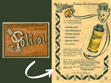 POLIROL erfindet das Möbel- und Fußboden-GlanzölDer Vorfahre unserer Holzpflegeprodukte ist das Möbel- und Fußboden-Glanzöl von POLIROL. Die Basis ist noch immer die ursprüngliche Rezeptur, auch wenn sie von unserer Forschungsabteilung immer weiterentwickelt wird.